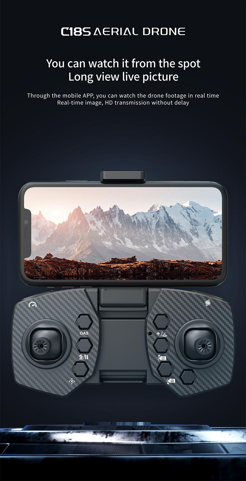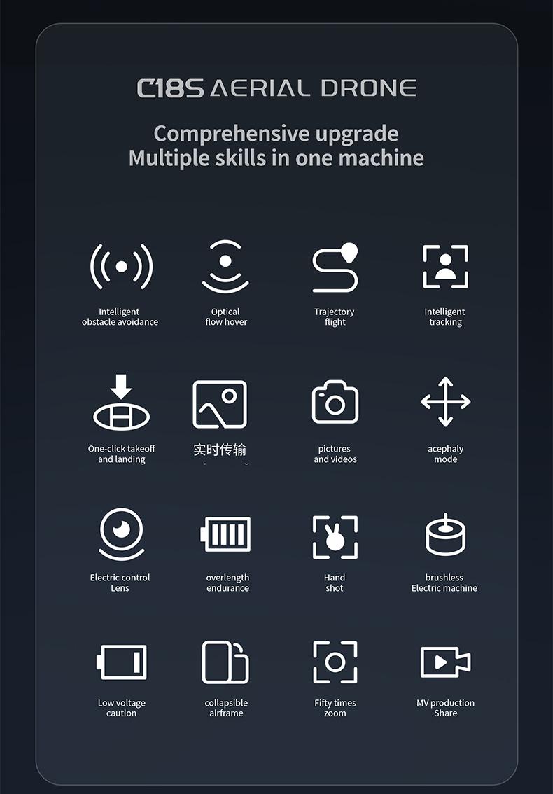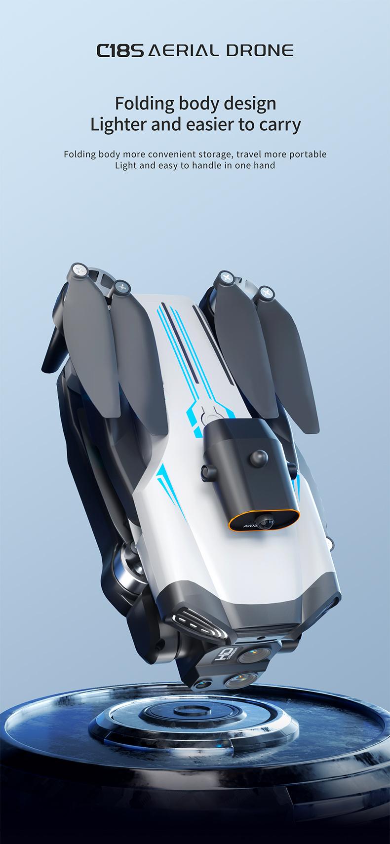 Aerial Drone 2025 C18S Pro with 4K UHD EIS Camera GPS 5G Wifi FPV Brushless Motors Optical Flow Smart Obstacle Avoidance Auto Return 360° Stunt Roll Dual Batteries